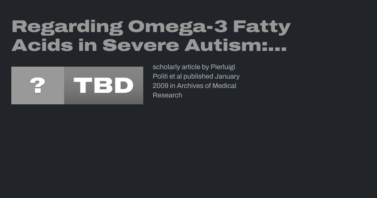 Regarding Omega-3 Fatty Acids in Severe Autism: Reply to Bent and Co-workers