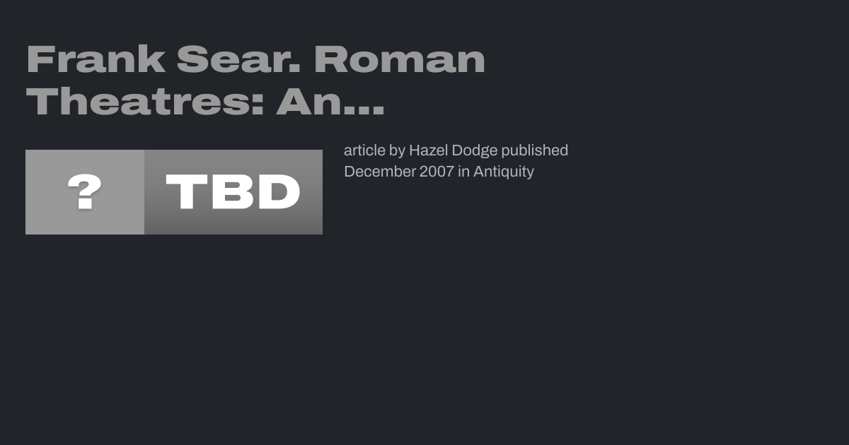 Frank Sear. Roman Theatres: An Architectural Study. xl+466 pages, 492 figures,144 plates, 25 tables. 2006. Oxford: Oxford University Press; 0-19-814469-5 hardback £195