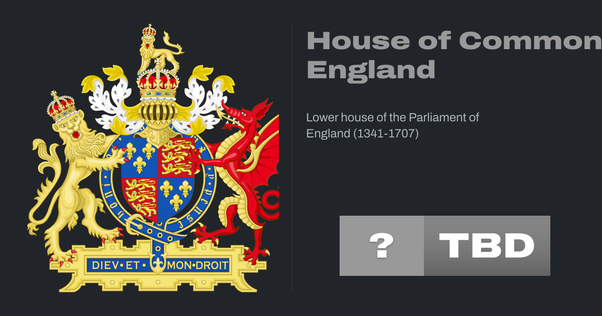 The House of Commons of England was the lower house of the Parliament of England (which incorporated Wales) from its development in the 14th century to the union of England and Scotland in 1707, when it was replaced by the House of Commons of Great Britain after the 1707 Act of Union was passed in both the English and Scottish parliaments at the...