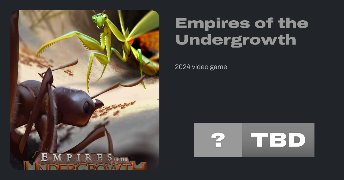 Empires of the Undergrowth is a real-time strategy game developed by Slug Disco Studios and published by Hooded Horse. Players control a colony of Ants or Termites by expanding the colony, gathering resources, and fighting enemies in standard RTS fashion.