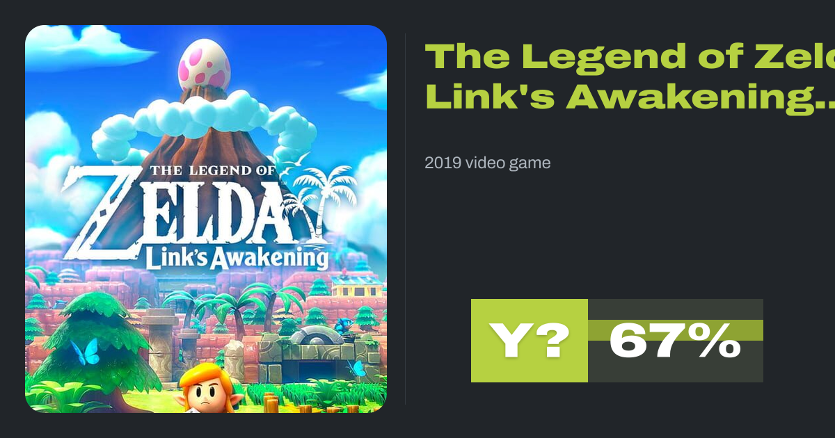 The Legend of Zelda: Link's Awakening is a 2019 action-adventure game developed by Grezzo and published by Nintendo for the Nintendo Switch. Released worldwide on September 20, 2019, Link's Awakening is a remake of the 1993 game of the same name for the Game Boy. It retains the original's top-down perspective and gameplay, along with elements...