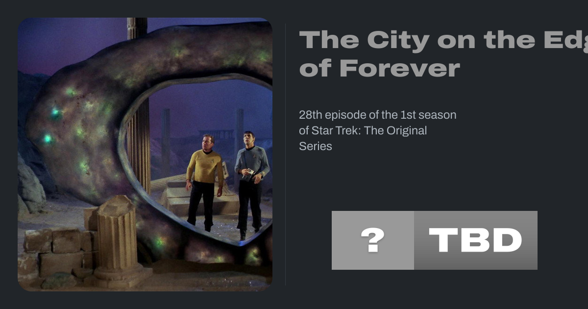 "The City on the Edge of Forever" is the twenty-eighth and penultimate episode of the first season of the American science fiction television series Star Trek. It was written by Harlan Ellison; contributors to and/or editors of the script included Steven W. Carabatsos, D. C. Fontana and Gene L. Coon. Gene Roddenberry made the final re-write. The...