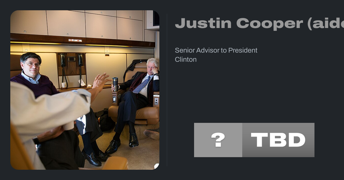 Justin Cooper is a former adviser to Bill Clinton, former President of the United States. Cooper first worked within the Office of Science and Technology in the Clinton administration before later becoming an aide for Clinton in his post-presidential years.