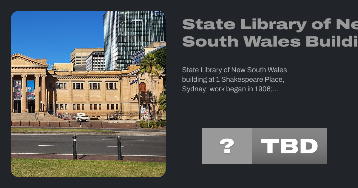 State Library of New South Wales building at 1 Shakespeare Place, Sydney; work began in 1906; large extension on Macquarie Street added in 1988