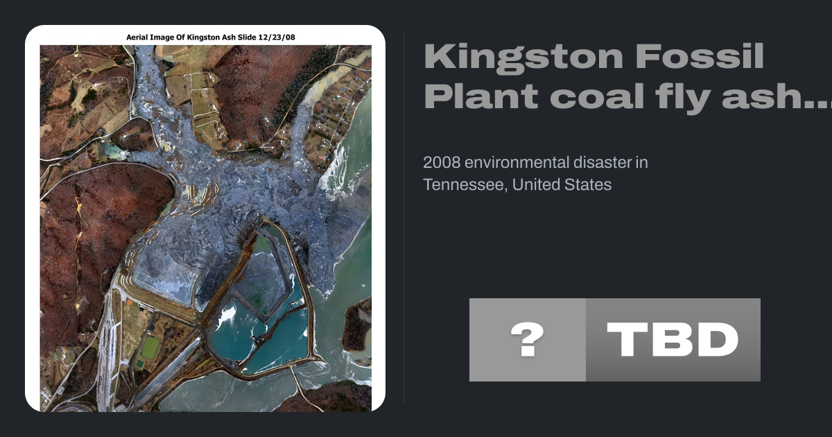 The Kingston Fossil Plant Spill was an environmental and industrial disaster that occurred on December 22, 2008, when a dike ruptured at a coal ash pond at the Tennessee Valley Authority's Kingston Fossil Plant in Roane County, Tennessee, releasing 1.1 billion US gallons (4.2 million cubic metres) of coal fly ash slurry. The coal-fired power...