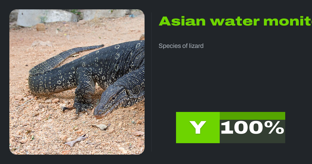 The Asian water monitor (Varanus salvator) is a large varanid lizard native to South and Southeast Asia. It is widely considered to be the second-largest lizard species, after the Komodo dragon. It is distributed from eastern and northeastern India and Bangladesh, the Andaman and Nicobar Islands, Sri Lanka, through southern China and Hainan...