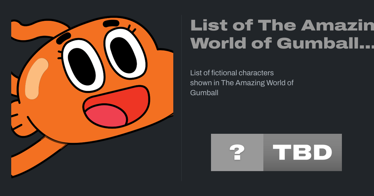 The Amazing World of Gumball characters appear in the animated sitcom The Amazing World of Gumball and revival series The Wonderfully Weird World of Gumball. The series revolves around the daily life of 12-year-old cat Gumball Watterson and his family—adoptive brother goldfish Darwin, younger sister Anais, and parents Nicole (née Senicourt) and...