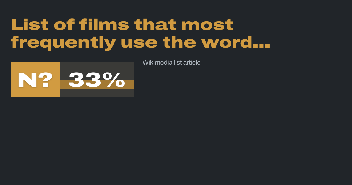 The use of profanity in films has often been controversial, but has increased significantly in recent years. The use of the word fuck in film draws particular criticism in 2005. The documentary Fuck dealt entirely with this phenomenon. The word fuck is thought to be the vulgar term used most in American film.