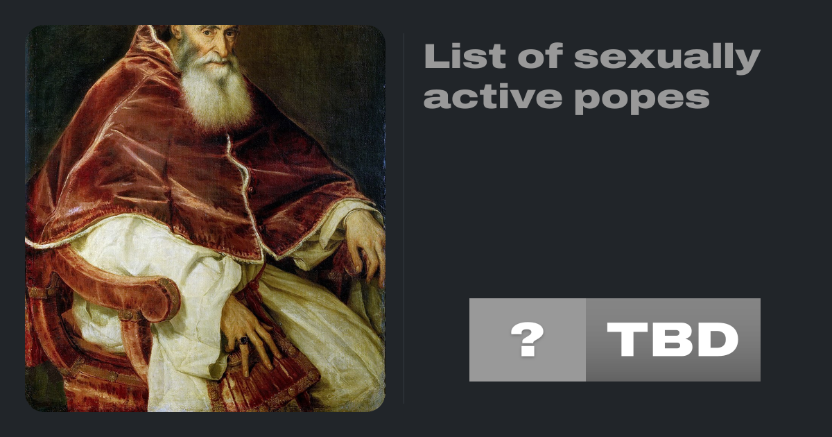 This is a list of sexually active popes, Catholic priests who were not celibate before they became pope, and those who were legally married before becoming pope. Some candidates were allegedly sexually active before their election as pope, and others were thought to have been sexually active during their papacies. A number of them had children.