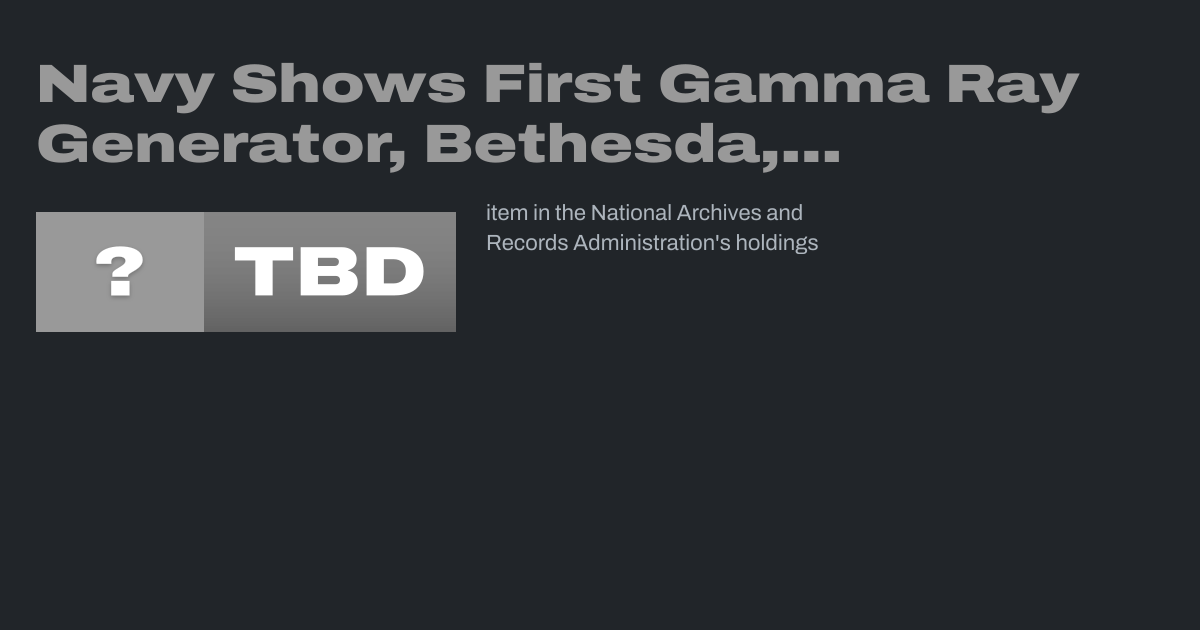 Navy Shows First Gamma Ray Generator, Bethesda, Maryland (NAID 102045722)