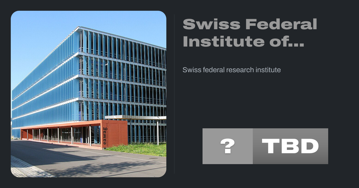 The Swiss Federal Institute of Aquatic Science and Technology (Eawag, German acronym for Eidgenössische Anstalt für Wasserversorgung, Abwasserreinigung und Gewässerschutz) is a Swiss water research institute and an internationally networked institution. As part of the Swiss Federal Institutes of Technology Domain, it is an institution of the...