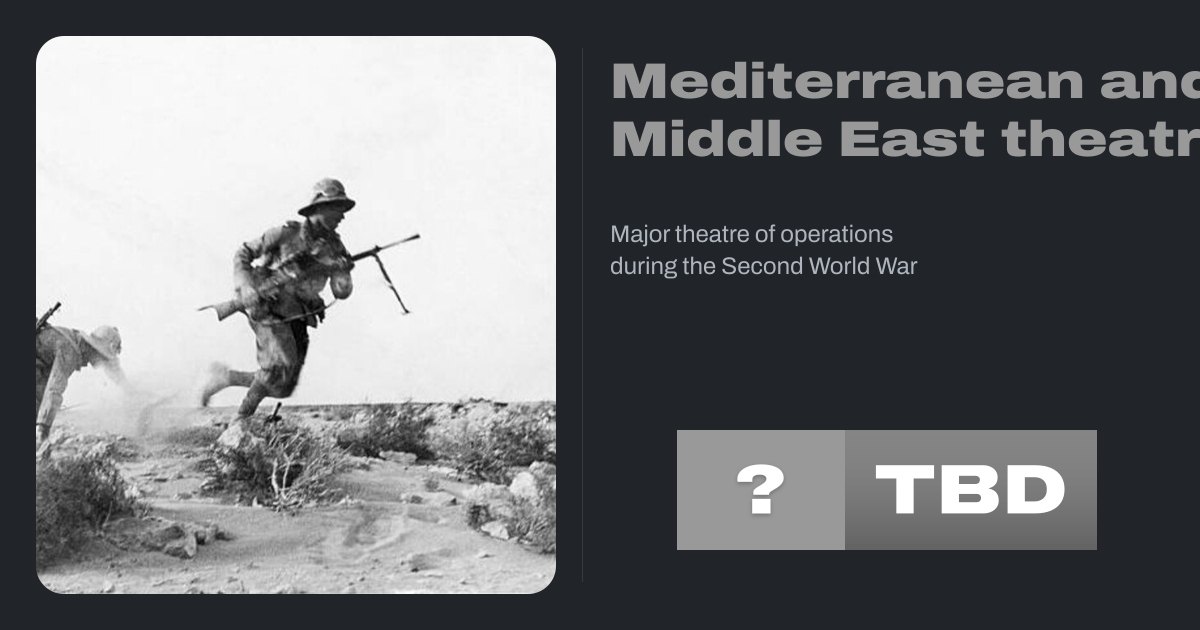 The Mediterranean and Middle East theatre, also known as the Mediterranean Theater of War, was a major theatre of operations during the Second World War. The vast size of the theatre saw interconnected land, naval, and air campaigns fought for control of the Mediterranean Sea, North Africa, the Horn of Africa, the Middle East and Southern...