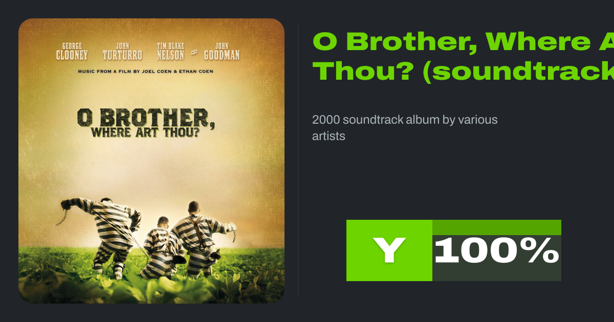 O Brother, Where Art Thou? is the soundtrack album of music from the 2000 American film of the same name, written, directed and produced by the Coen Brothers and starring George Clooney, John Turturro, Tim Blake Nelson, and John Goodman.