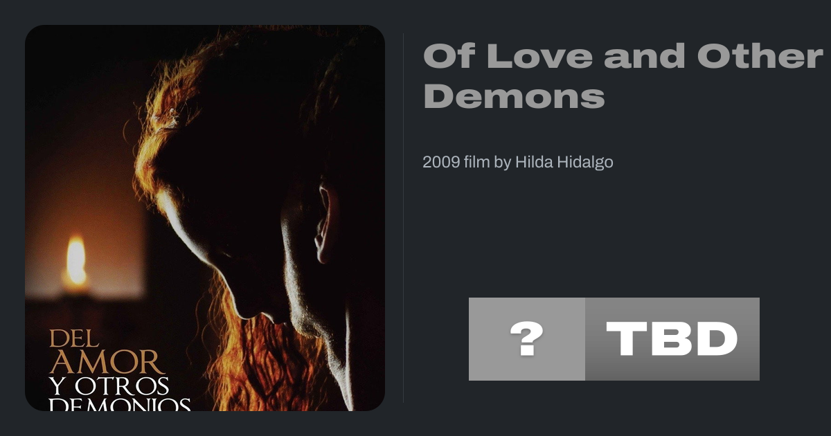 Of Love and Other Demons (Spanish: Del amor y otros demonios) is a 2009 internationally co-produced drama film directed by Hilda Hidalgo, who also wrote the screenplay. The film was selected as the Costa Rican entry for the Best Foreign Language Film at the 83rd Academy Awards, but it did not make the final shortlist. The film is based on the...