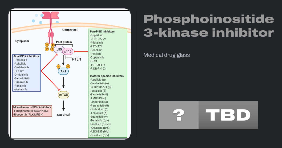 Phosphoinositide 3-kinase inhibitors (PI3K inhibitors) are a class of medical drugs that are mainly used to treat advanced cancers. They function by inhibiting one or more of the phosphoinositide 3-kinase (PI3K) enzymes, which are part of the PI3K/AKT/mTOR pathway. This signal pathway regulates cellular functions such as growth and survival. It...