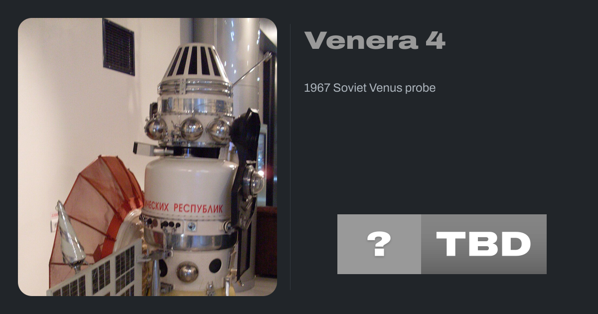 Venera 4 (Russian: Венера-4, lit. 'Venus-4'), also designated 4V-1 No.310, was a probe in the Soviet Venera program for the exploration of Venus. The probe comprised a lander, designed to enter the Venusian atmosphere and parachute to the surface, and a carrier/flyby spacecraft, which carried the lander to Venus and served as a communications...