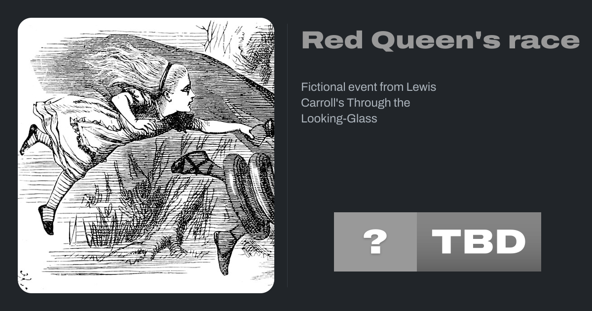 The Red Queen's race is an incident that appears in Lewis Carroll's Through the Looking-Glass and involves both the Red Queen, a representation of a Queen in chess, and Alice constantly running but remaining in the same spot.