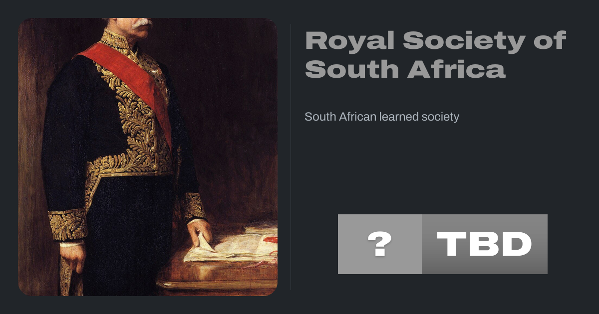 The Royal Society of South Africa is a learned society composed of eminent South African scientists and academics. The society was granted its royal charter by King Edward VII in 1908, nearly a century after Capetonians first began to conceive of a national scholarly society. The 1877 founder and first president of the society was Sir Bartle...
