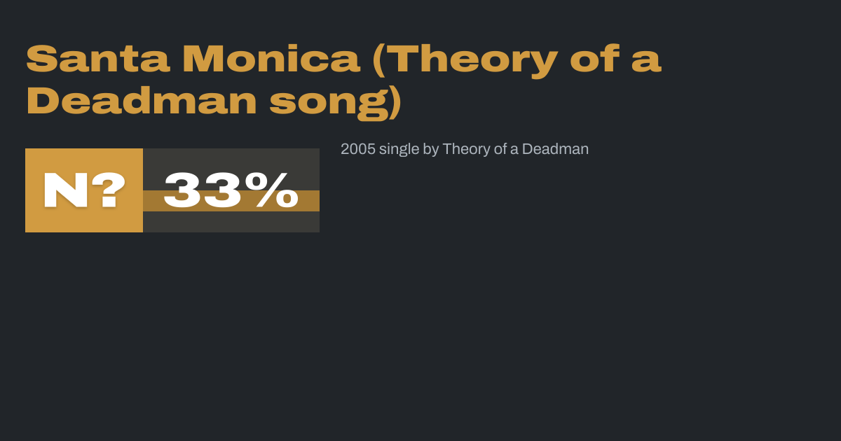 "Santa Monica" is a single by Theory of a Deadman, featured on the Gasoline album. It was released as the second single in Canada in June 2005, and as the fourth single in the United States on August 18, 2006. The song was heavily featured in the video game Fahrenheit (also known as Indigo Prophecy).