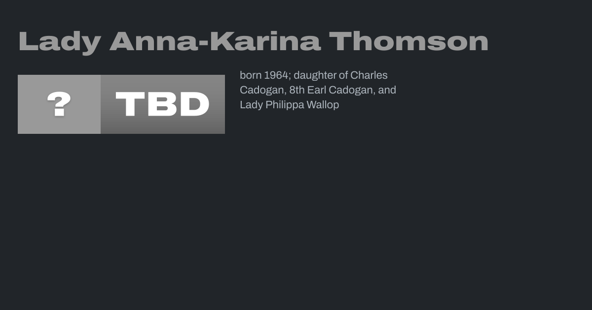 born 1964; daughter of Charles Cadogan, 8th Earl Cadogan, and Lady Philippa Wallop