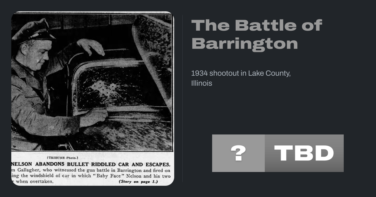 The Battle of Barrington was a shootout between Division of Investigation (DOI) agents and outlaws led by Baby Face Nelson that took place on November 27, 1934, in Barrington, a suburb of Chicago, Illinois. It resulted in the deaths of Nelson, Agent Herman "Ed" Hollis, and Agent/Inspector Samuel P. Cowley.