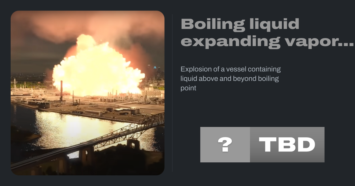 A boiling liquid expanding vapor explosion (BLEVE, BLEV-ee) is an explosion caused by the rupture of a vessel containing a pressurized liquid that has attained a temperature sufficiently higher than its boiling point at atmospheric pressure. Because the boiling point of a liquid rises with pressure, the contents of the pressurized vessel can...