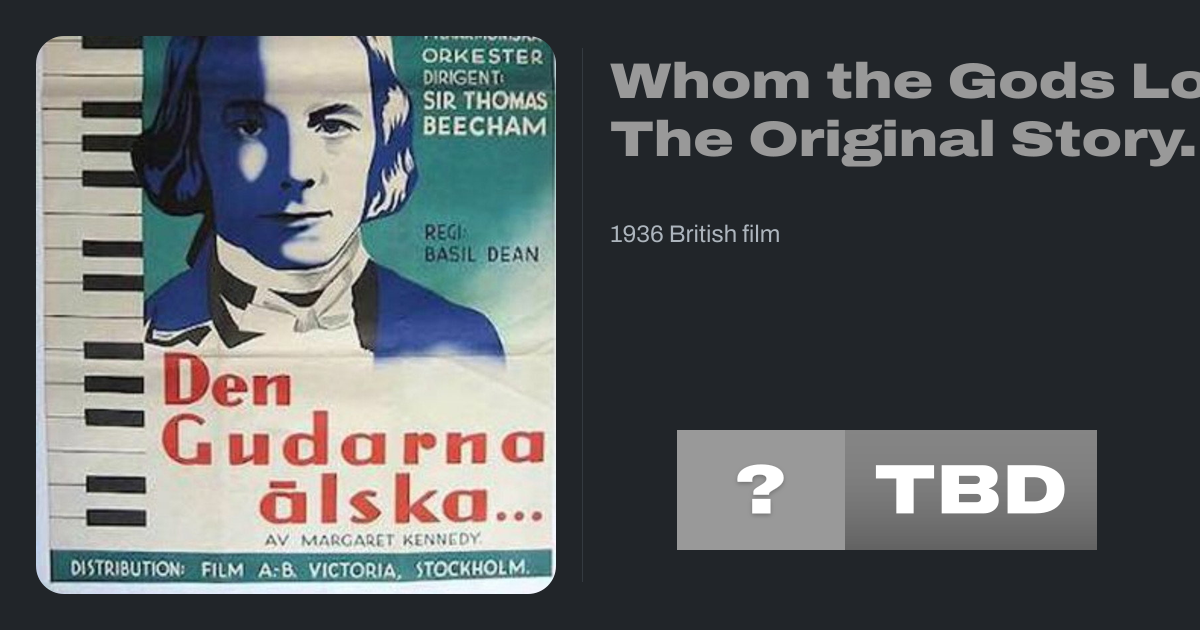 Whom the Gods Love, also known as Mozart, is a 1936 British biographical film directed by Basil Dean and starring Stephen Haggard, Victoria Hopper and John Loder. The film portrays the life of the Eighteenth Century Austrian composer Wolfgang Amadeus Mozart.