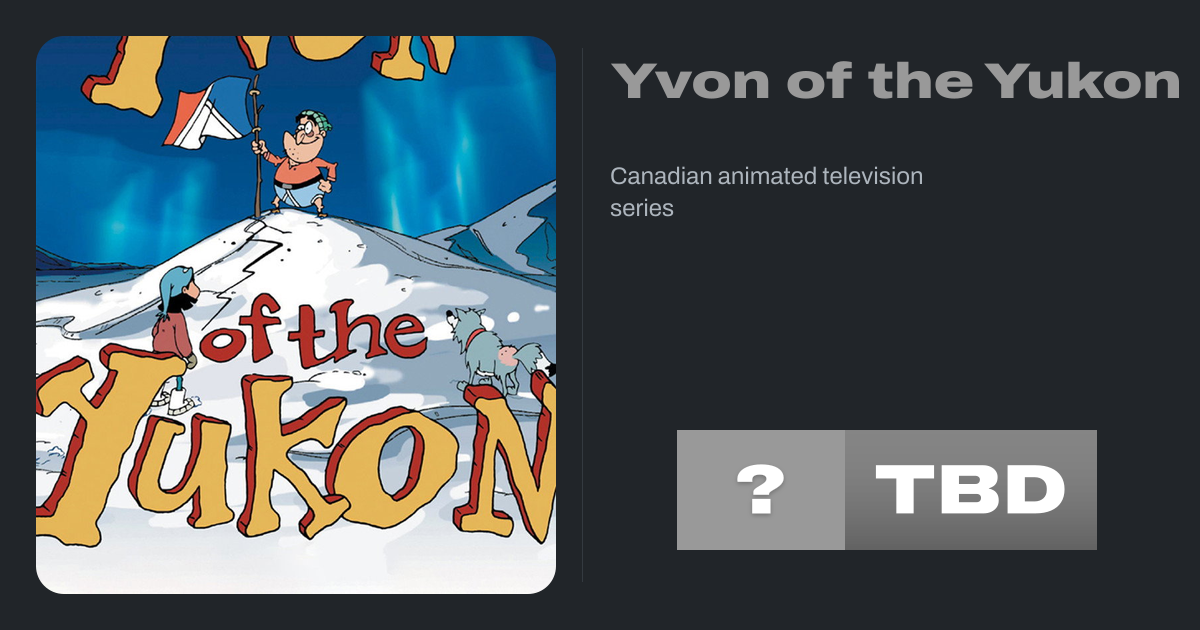 Yvon of the Yukon is a Canadian animated television series produced by Studio B Productions (now "WildBrain") and Corus Entertainment in association with Alliance Atlantis Communications for seasons 1–2. It was produced with the participation of the Canadian Television Fund and the Canadian Film or Video Production Tax Credit with the assistance...