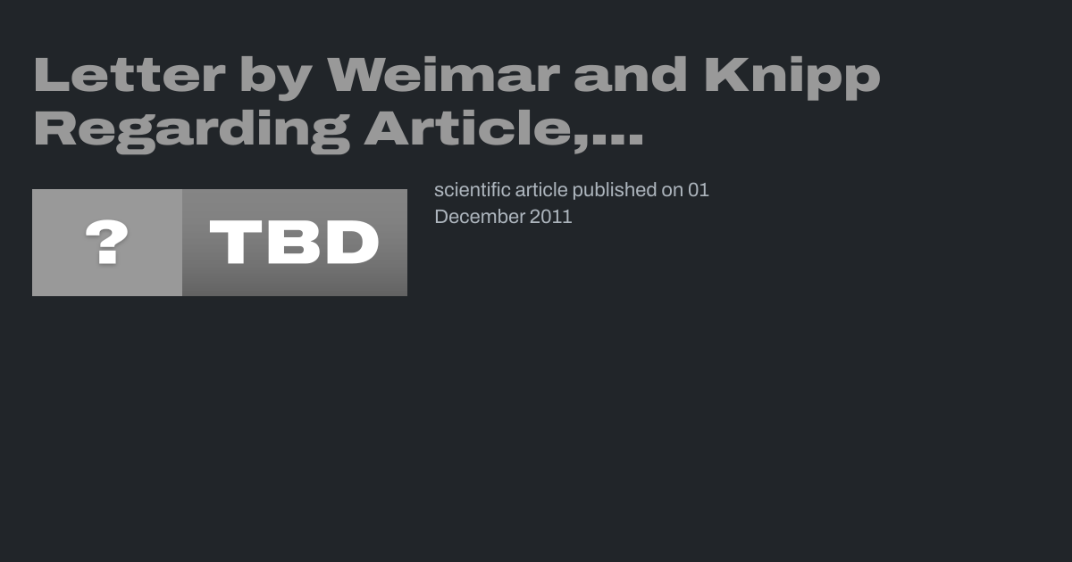 Letter by Weimar and Knipp Regarding Article, “Patients With Severe Asymptomatic Carotid Artery Stenosis Do Not Have a Higher Risk of Stroke and Mortality After Coronary Artery Bypass Surgery”