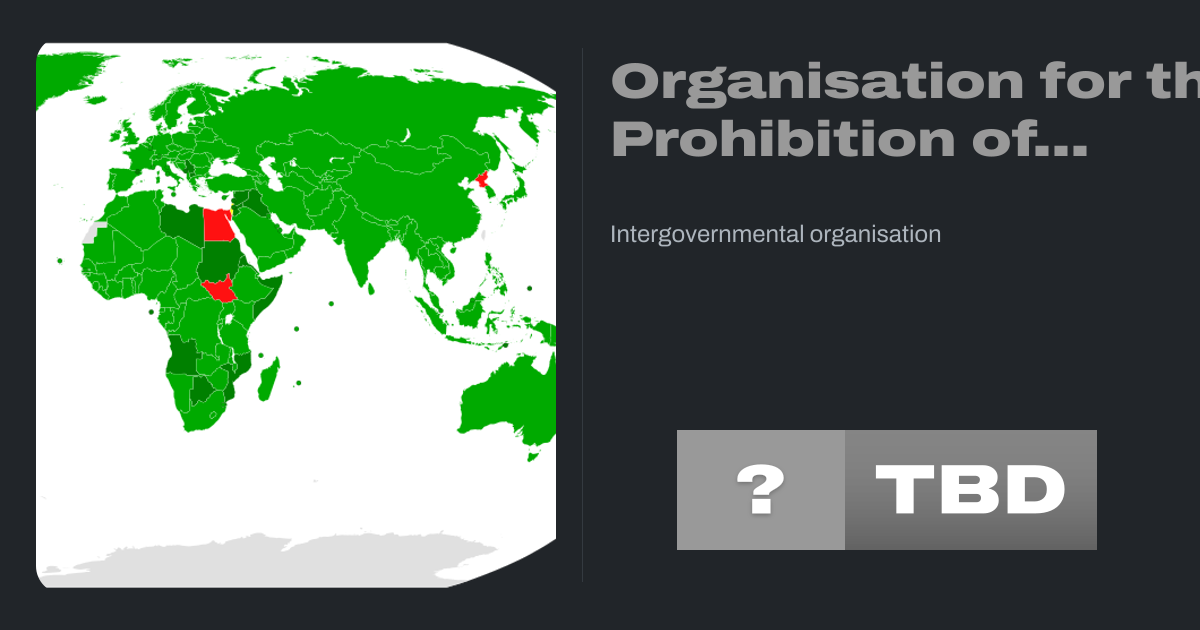 The Organisation for the Prohibition of Chemical Weapons (OPCW) is an intergovernmental organisation and the implementing body for the Chemical Weapons Convention (CWC), which entered into force on 29 April 1997. The OPCW, with its 193 member states, has its seat in The Hague, Netherlands; it oversees the global endeavour for the permanent and...