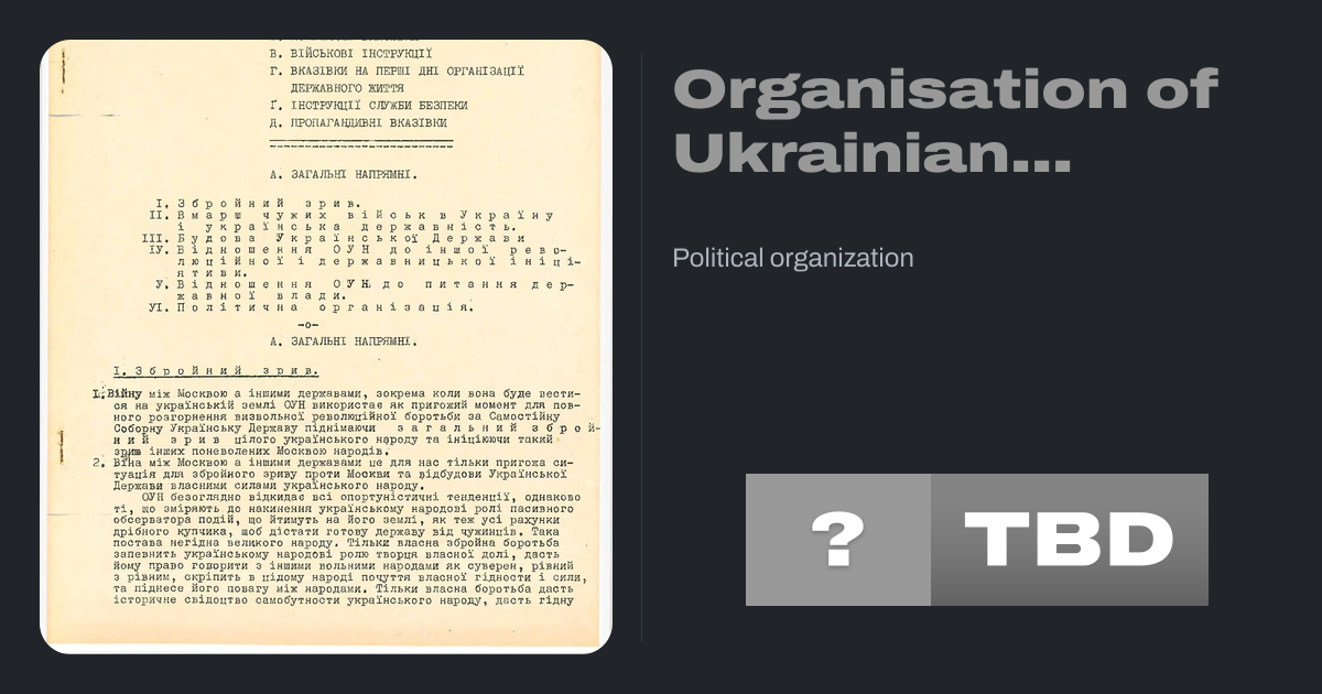 The Organisation of Ukrainian Nationalists (OUN; Ukrainian: Організація українських націоналістів, romanized: Orhanizatsiia ukrainskykh natsionalistiv) was a Ukrainian nationalist organization established on February 2, 1929 in Vienna, uniting the Ukrainian Military Organization with smaller, mainly youth, radical nationalist right-wing groups....