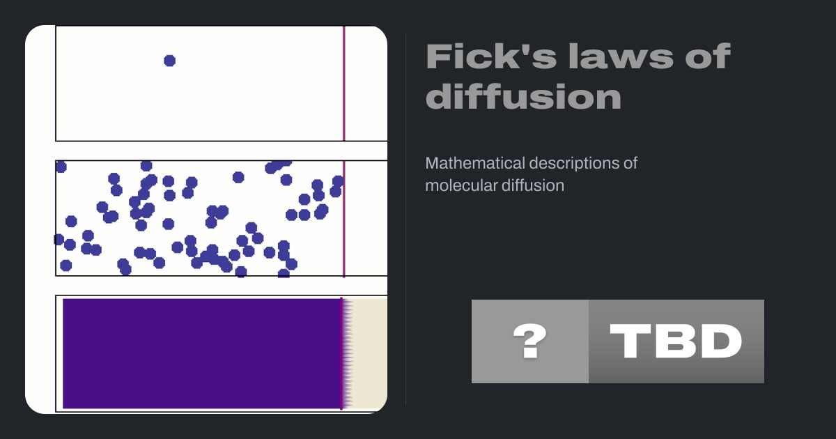 Fick's laws of diffusion describe diffusion and were first posited by Adolf Fick in 1855 on the basis of largely experimental results. They can be used to solve for the diffusion coefficient, D. Fick's first law can be used to derive his second law, which in turn is identical to the diffusion equation.