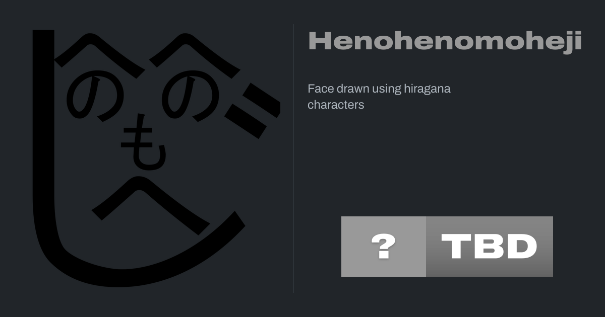 Henohenomoheji (Japanese: へのへのもへじ HEH-noh-HEH-noh-moh-HEH-jee) or hehenonomoheji (へへののもへじ) is a face known to be drawn by Japanese schoolchildren using hiragana characters. It became a popular drawing during the Edo period.