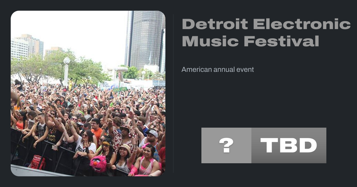 Movement Electronic Music Festival is an annual electronic dance music event held in the birthplace of Techno, Detroit, each Memorial Day weekend since 2006. Previous electronic music festivals held at Hart Plaza on Memorial Day weekend include Detroit Electronic Music Festival (2000โ2002), Movement (2003โ2004) and Fuse-In (2005). The four...