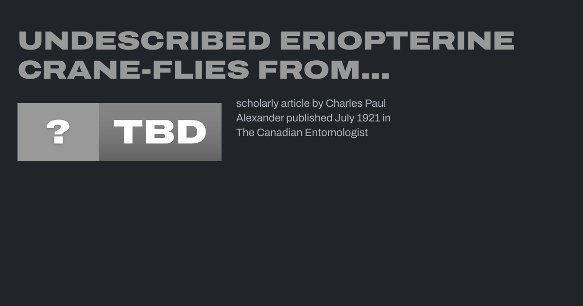 scholarly article by Charles Paul Alexander published July 1921 in The Canadian Entomologist
